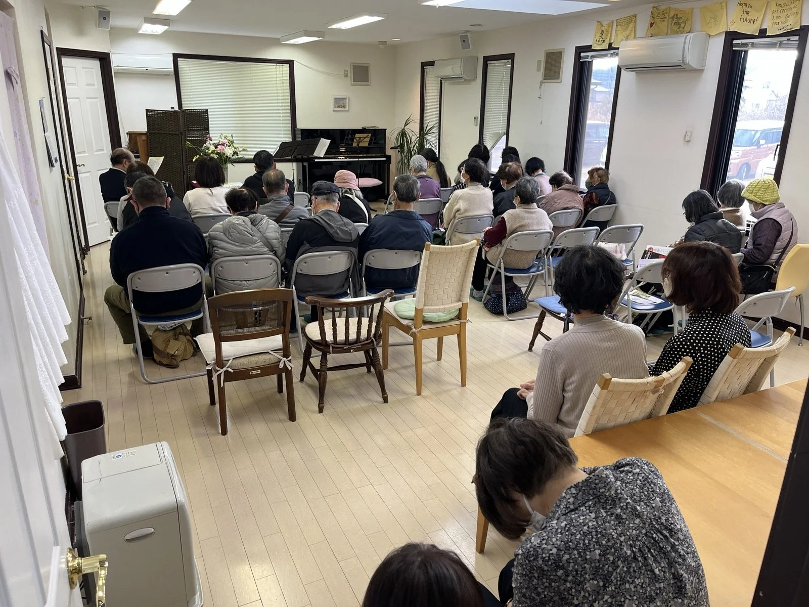 1. Just 300 meters down the street from Nozomi Center, the townspeople met at the Memorial Wall at 2:46 p.m. for a moment of silence and prayer of comfort to those who died fifteen years ago in the 2011 massive earthquake and tsunami. At 2:46, twenty-six people gathered at Nozomi to pray audibly with us to the Living God. We began adding this prayer time to our concert poster several years ago. The first year only six or so came, and others joined later for the three o' clock concert. Little by little, the number of people coming to pray has been increasing. It is astounding to consider, people who have yet to put their trust in Jesus are willing to risk what their neighbor's think about them (crucial to Japanese) to come to pray with us instead of to attend the town's pagan ceremony. God is at work, and we pray that His Word and Spirit will bring these people all to faith in the Lord Jesus.